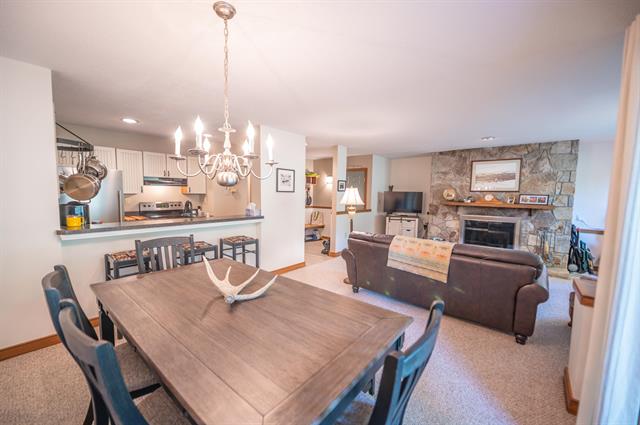 Unique vaulted and remodeled unit at Snow Mountain Village at the base of the Mount Snow ski resort, with heat and hot water included in the HOA fees! This spacious unit is conveniently located on the main floor with easy access from the entry. Inside you are greeted by a tiled mudroom area, which leads into the large vaulted great room, complete with wood burning fireplace and large windows. There is a nice size dining room to the rear as well as a large updated kitchen with breakfast bar, tile backsplash, butcher block counter, and stainless appliances. There are two sizeable suites, one on the main floor and one of the second floor, either of which could work as your primary bedroom, but the upstairs also has nice light and vaulted ceilings, as well as a soaking tub and second shower. Never worry about heating bills with rentals as the heat and hot water are included. The hoa fee also includes direct shuttle service to and from the base area, an indoor pool, hot tub, sauna, tennis court, landscaping, snow removal, building maintenance, and more. Each unit also has a nice size ski locker outside to stow your gear, and common area in the buildings.