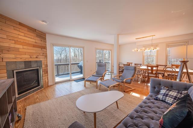 Turn key and updated doesn't even begin to describe this townhome just down from the Mount Snow ski resort. Every facet has been updated so that you can experience downtime, not upkeep. There is a large vaulted living room with great natural light, a new stacked stone hearth and wood burning fireplace, large kitchen with breakfast bar, new counters, energy star appliances, granite style sink with stainless faucet, wooden cabinet doors, and hardware, a spacious dining area for apres ski, which looks out over the recently rebuilt rear deck and the mountain view beyond, new luxury vinyl flooring on the main floor and new carpet upstairs and down, a main floor full bathroom, completely renovated, two large bedrooms on the entry level, a gorgeous master bath with tiled shower and glass doors, a large sleeping/game loft on the upper level, a newly tiled mudroom and ski entry, an owners ski closet, new stackable washer/dryer, and more. Less obvious features include new windows and slider, new electrical outlets, many with usb, smart thermostats, smart front door lock and webcam doorbell, new led lighting fixtures, cable internet service, smart TVs, new window shades and drapes, updated furnishings, and a newly insulated crawlspace with vapor barrier and closed cell foam. Combine this with convenient building maintenance, wood, trash, snow removal, and nearby shuttle service, and you just won't find more bang for your buck.