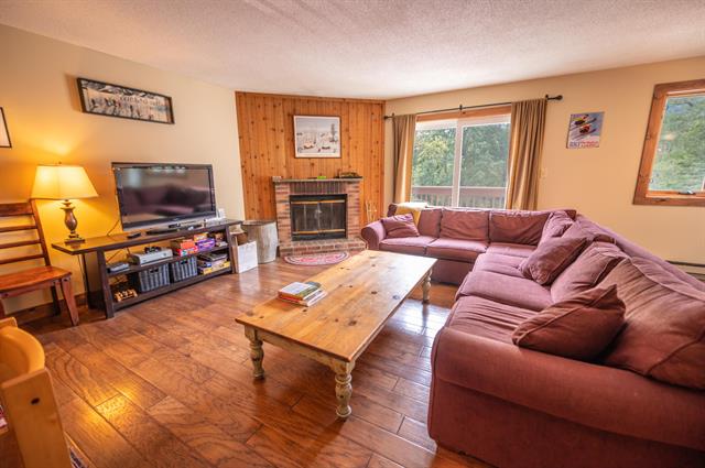 Beautiful woodsy Suntec townhome just down from the base of the Mount Snow ski resort. This spacious 4 bedroom townhome sits about a mile south of Mount Snow, with direct access to snowmobile trails, and easy access to the nearby village of Wilmington and lakes. The unit has a large open concept floor plan with vaulted great room, rustic wood paneling, passive solar exposure, a wood burning fireplace and brick hearth, large dining room with exposed beams, spacious kitchen with wood cabinets, stainless appliances, and breakfast bar, large mudroom entry with storage for gear, main floor full bath, hot tub and sauna, which can be converted to a bonus room as outdoor hot tubs are now allowed, a second floor primary suite with vaulted ceiling and walk-in closet, two large guest bedrooms and a full guest bath, and a third floor large family room with enormous owner closet area if you choose to rent. The style and location are perfect for strong rentability. Amenities include building maintenance, recently rebuilt roofs, an outdoor swimming pool, tennis court, direct shuttle service to Mount Snow, direct snowmobile trail access, great parking space, landscaping, and snow removal.