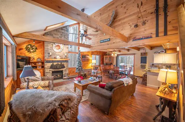 Absolutely meticulous and renovated gambrel chalet with private parcel and easy access to both Mount Snow and Stratton. This home exudes the vibe of a true Vermont ski retreat. Inside you are treated to extensive upgrades throughout making it truly turn key. There is a large great room with expansive windows, natural woodwork, great natural light, and efficient gas stove, a beautiful updated custom kitchen with breakfast bar and new appliances, spacious dining area, main floor full bath and bedroom. Above off the vaulted space is an upper level loft and large bedroom. The lower level is ideal for entertaining with large family room and entry area, second media room ideal for overflow sleeping, a third bedroom and full bath, as well as laundry. There is also a large front deck for entertaining, fire pit area, snowmobile trail access by way of the association roads, and newly installed septic system. The association also has an indoor pool for year round enjoyment, and tennis court. With convenient access to skiing and easy access between two great mountains, this will satisfy most, and therefore won't last long!