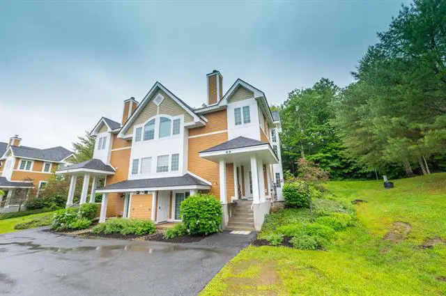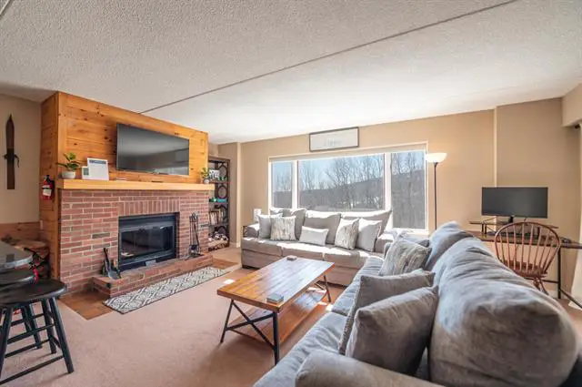 Beautiful Timber Creek end unit townhome with great upgrades, direct shuttle service to and from Mount Snow, and winter ski trail views. Timber Creek is located right across from the upper entrance to Mount Snow with direct shuttle service from your front door to the base area and convenient amenities including an on site management company, exterior maintenance, snow removal, landscaping, and more. The recently renovated Sugar House amenities center include indoor and outdoor pools, hot tub, gym, racquetball and basketball courts, pickleball and tennis courts, locker rooms, and a network of cross country ski trails. This unit features an open concept living space with updated windows and doors, a wood burning fireplace with floor to ceiling brick hearth, a large open kitchen with updated appliances, new counters, and breakfast bar, a spacious dining room which opens to the oversized private deck to entertain and BBQ, a main floor bedroom and full bath, rustic mudroom entry with bench and cubbies, ski locker, and covered front porch. The walkout lower level has a unique layout with an additional bunkroom slash tv room, 2 more bedrooms and another full bath, laundry room, owners closet, exterior area which allows outdoor hot tubs, and great side and rear yard spaces.