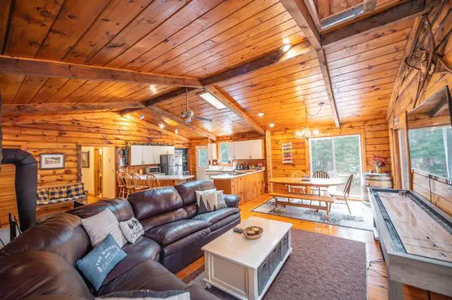 Enjoy perfect Vermont styling in this spacious and functional home just a short drive to the Mount Snow ski resort, nearby lakes, and villages. This private location is nestled just off the Mount Snow golf course in the Deerfield Valley, and easily accessible from a paved road. The home has been fully renovated with no expense spared. Features include an open concept floor plan with expansive windows and great natural light, living room with exposed barnboard paneling, a large kitchen with island, breakfast bar, and stainless appliances, dining area for guests, a large screened porch off the living room with dining table and couches to extend the usable space in warmer months, dual main floor primary suites with spa like baths, an upstairs guest suite, two additional bedrooms with yet another shared bath, main floor powder room, lower level family room and sauna, and great mudroom entry for all your gear off the covered front porch. Just a few steps away is the expansive family room area in the garage loft with billiards and ping pong tables, bar, and gas fireplace, already plumbed for another bath, over the oversized three car garage. There is also great lawn space, a back stone patio with hot tub and outdoor stone fireplace, and ample parking for all your guests. Thanks to sewer for peace of mind, and a quiet community with dead end street, you can just worry about downtime, not upkeep.